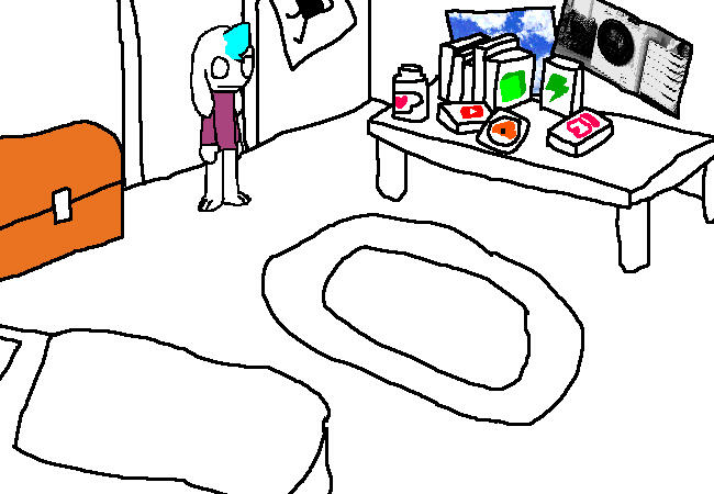 His name is TOMASU. As was previously mentioned, this day is one of no importance. His room is SCATTERED. He has a variety of INTERESTS. He enjoys CREATING THINGS FOR OTHERS, even if he ISN'T VERY GOOD AT IT. He has a fondness for the video game CAVE STORY, which is his main inspiration for MOST OF THE THINGS HE MAKES. He also creates MUSIC.It appears that he might be trying to show you something.